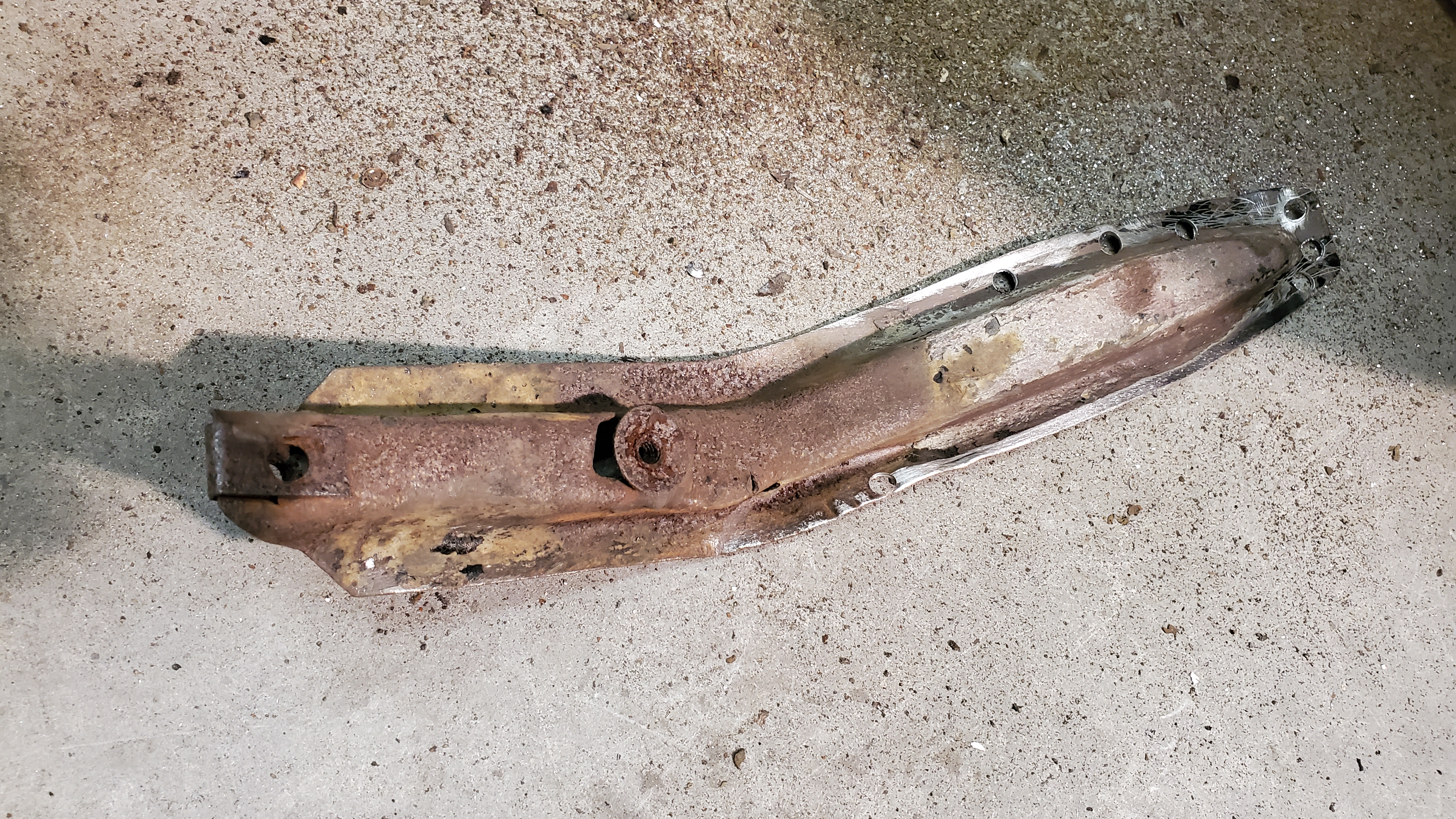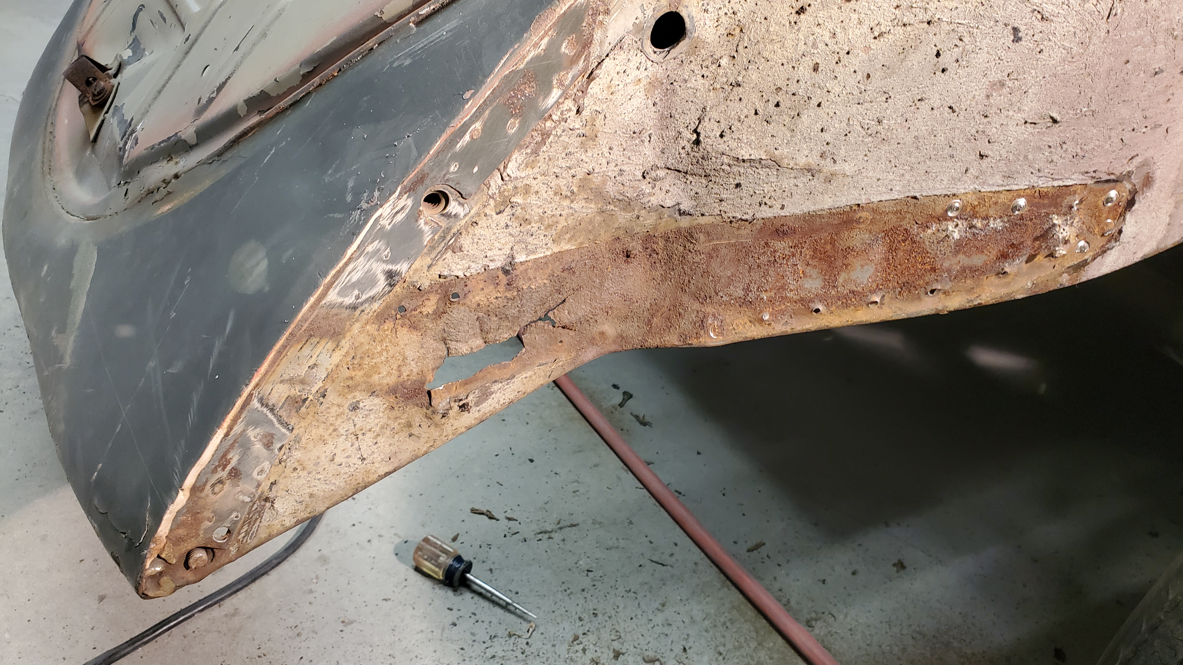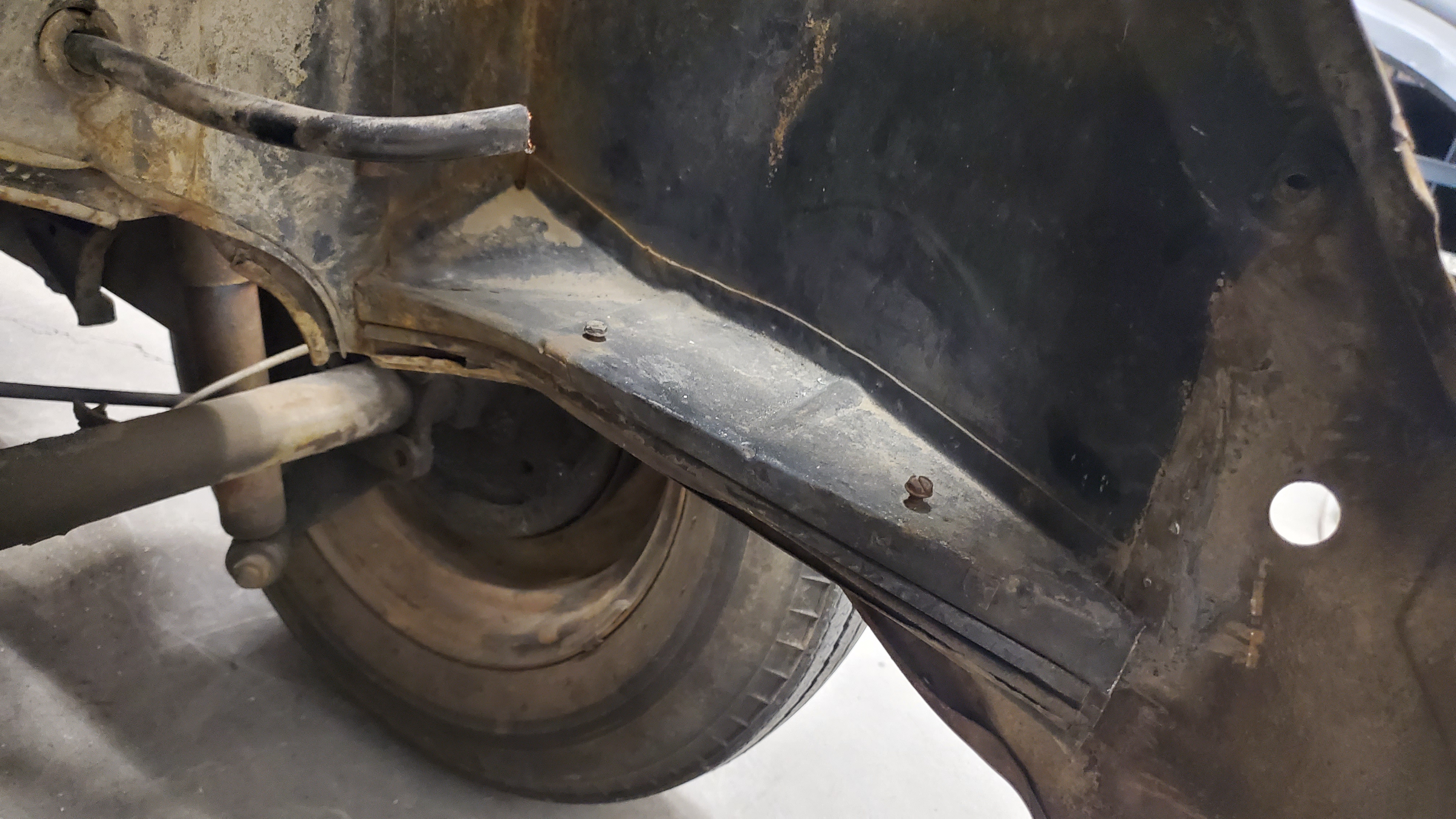 The rear bumper brackets were removed to expose the rust behind them, and the apron was removed.
