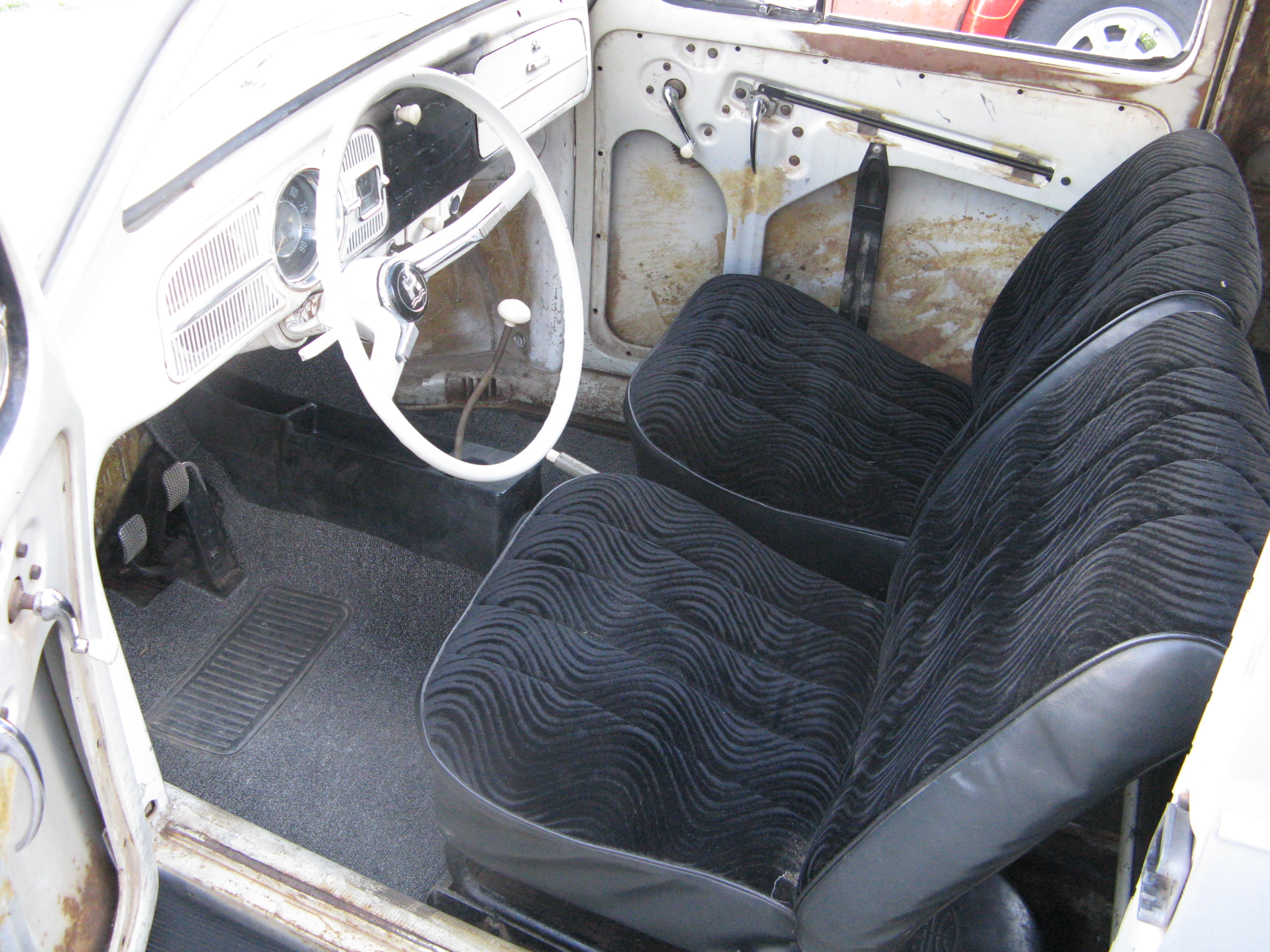 The interior came out of another Beetle that I had and was in decent shape. This car came with front seat frames only at time of purchase and was a bare bones shell for the most part.