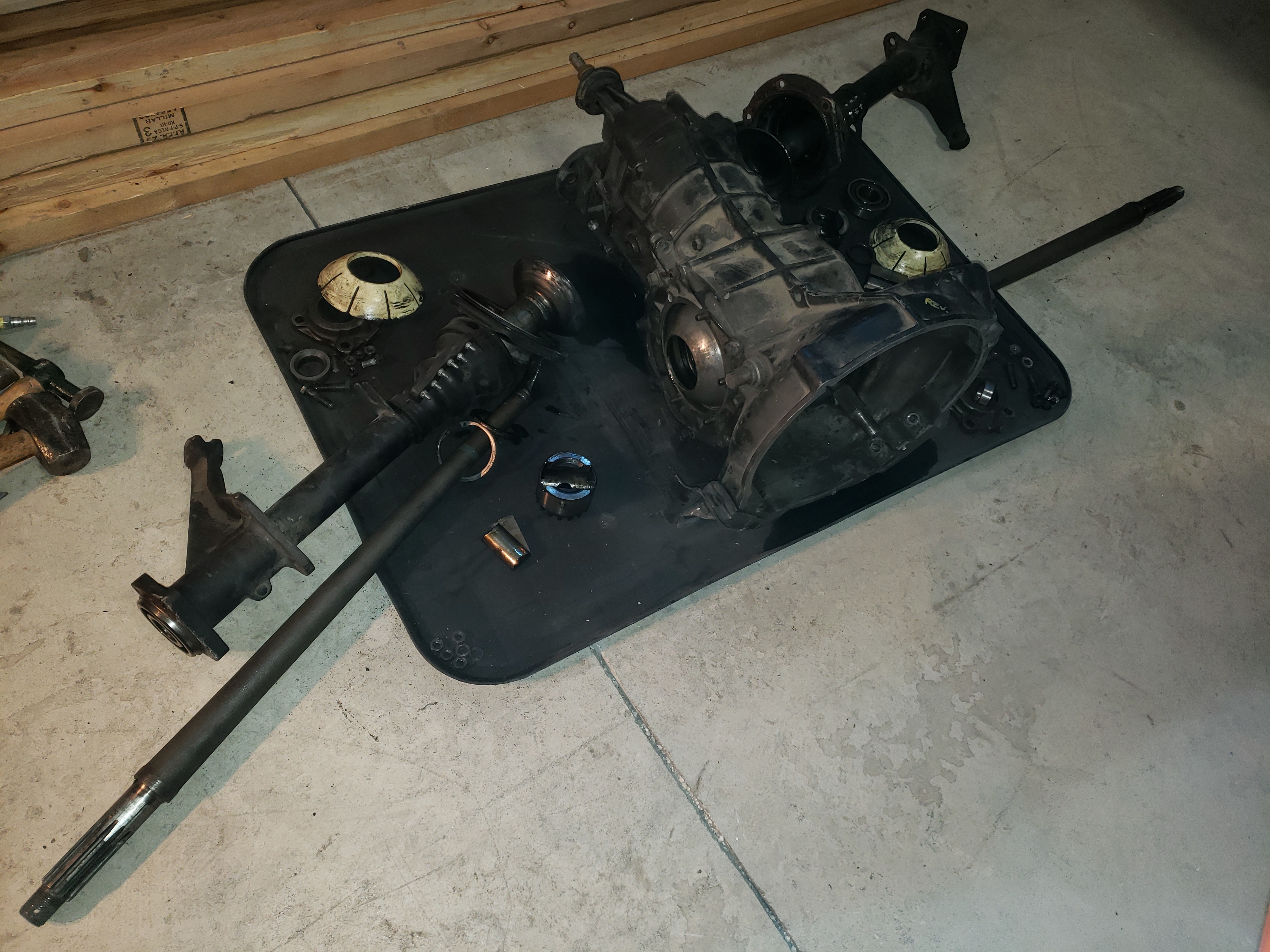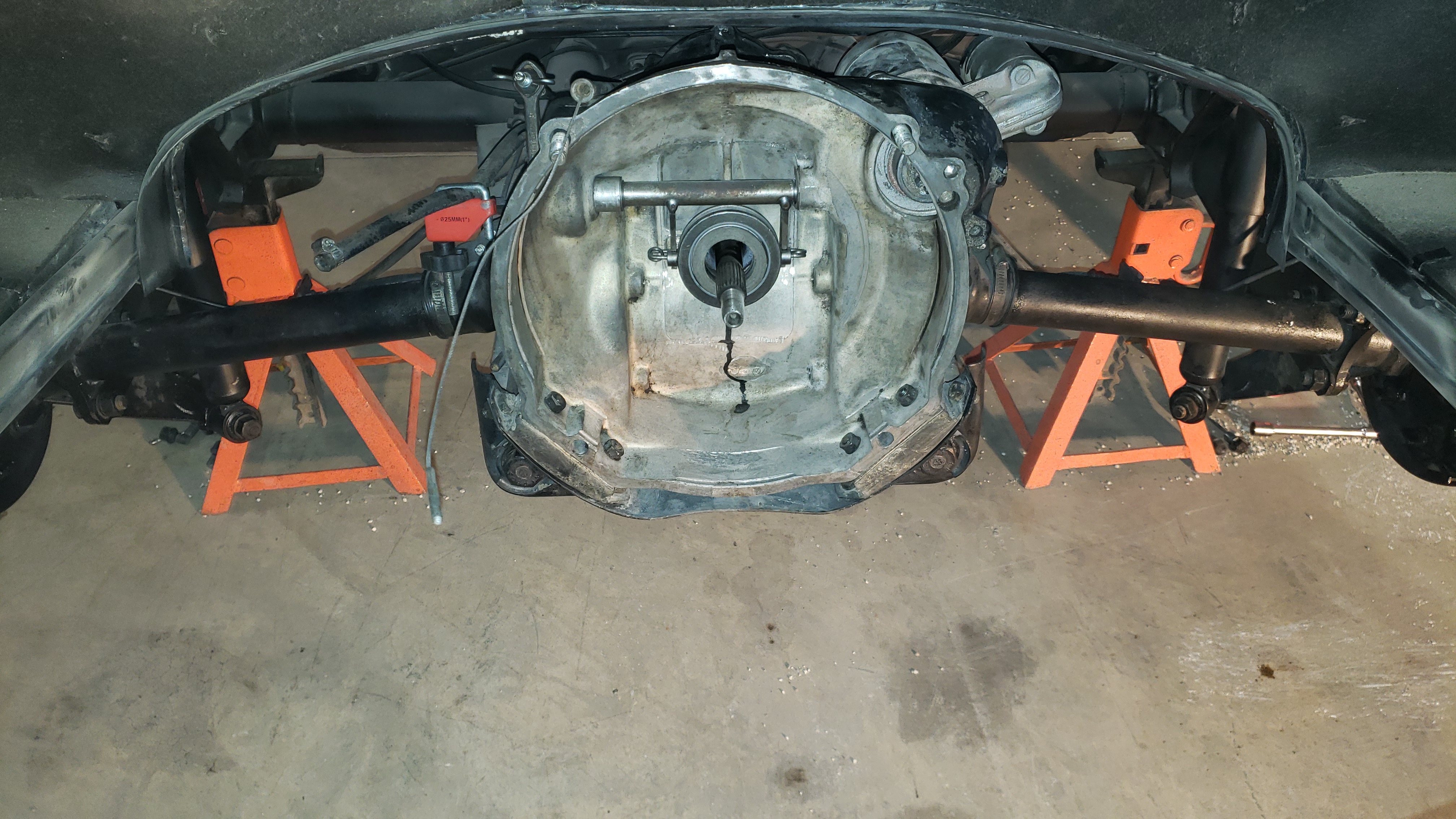 The transmission was pulled out, but I kept the 1968 axles and tubes for the 1967 transmission that was going into the car. I was told that the reverse synchronizer was out and it will be set on the shelf as a core for a future build.