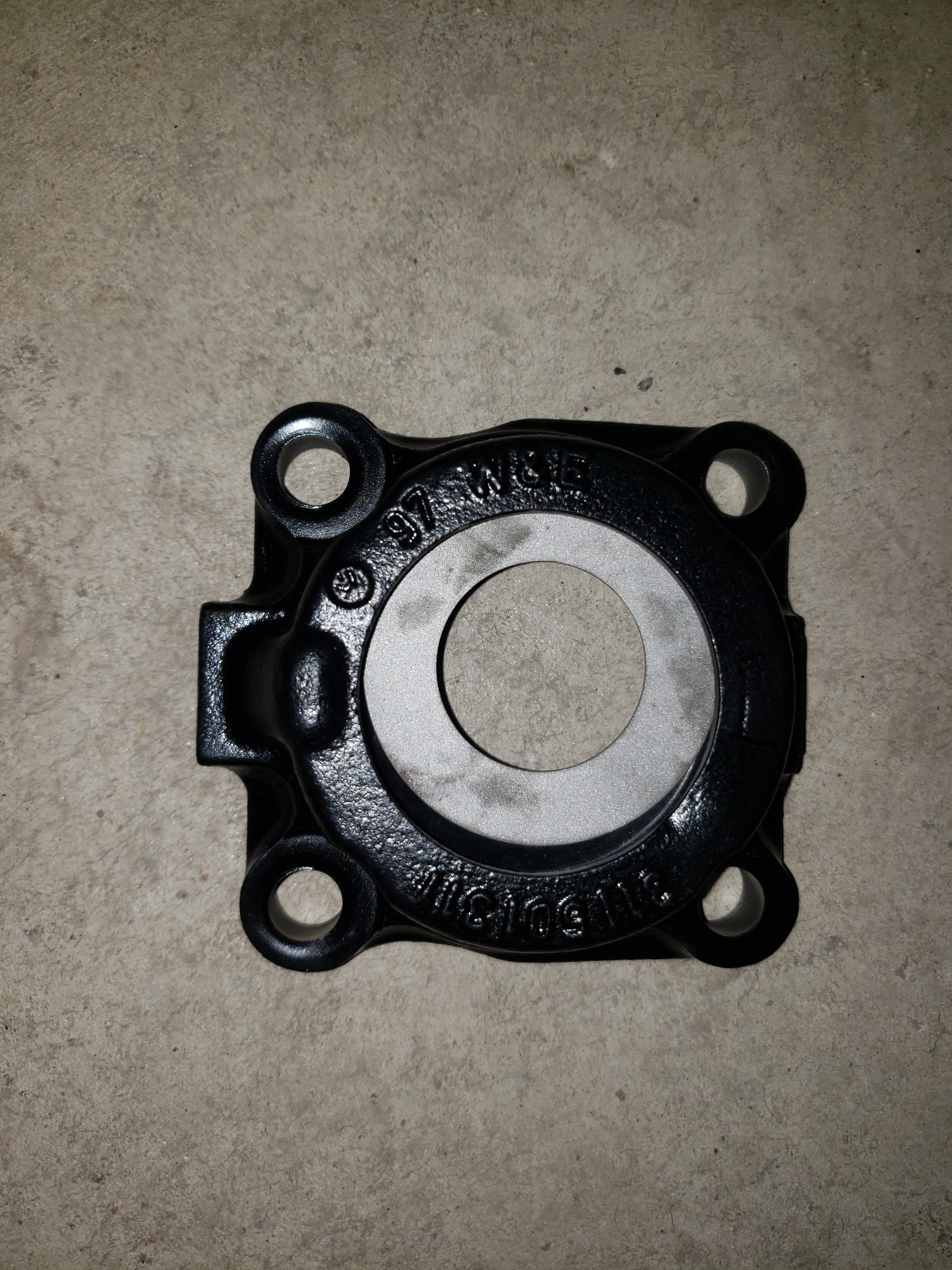 To convert the transmission from a 6 volt to 12 volt flywheel the bell housing needs to be ground for clearance at the four points where the engine studs and bolts go through, and next to the starter bushing. I use a spare flywheel to check clearance as I grind to check the fit. The starter bushing was replaced with a 6 volt to 12 volt conversion bushing as well to accept the smaller 12 volt starter shaft.