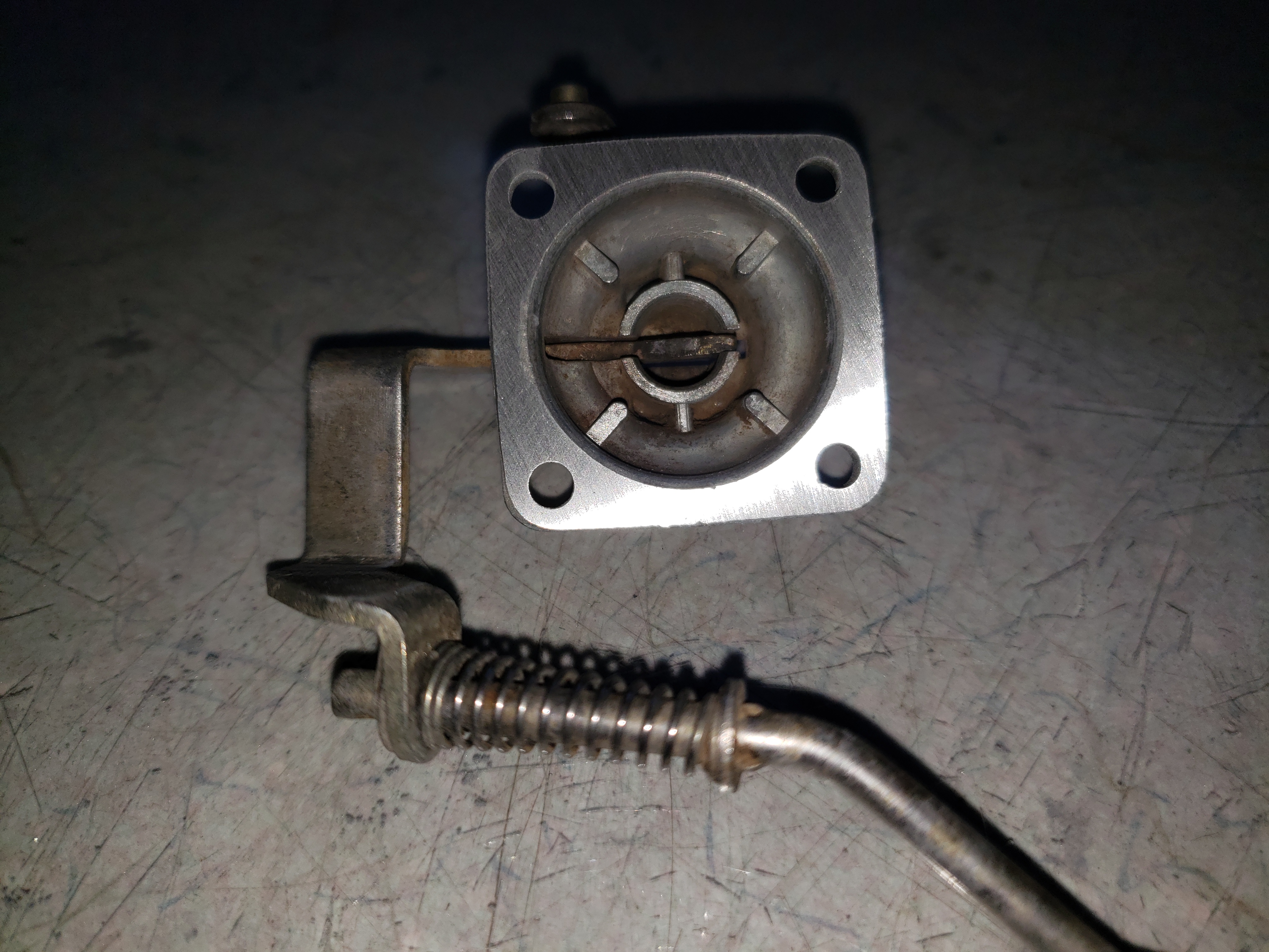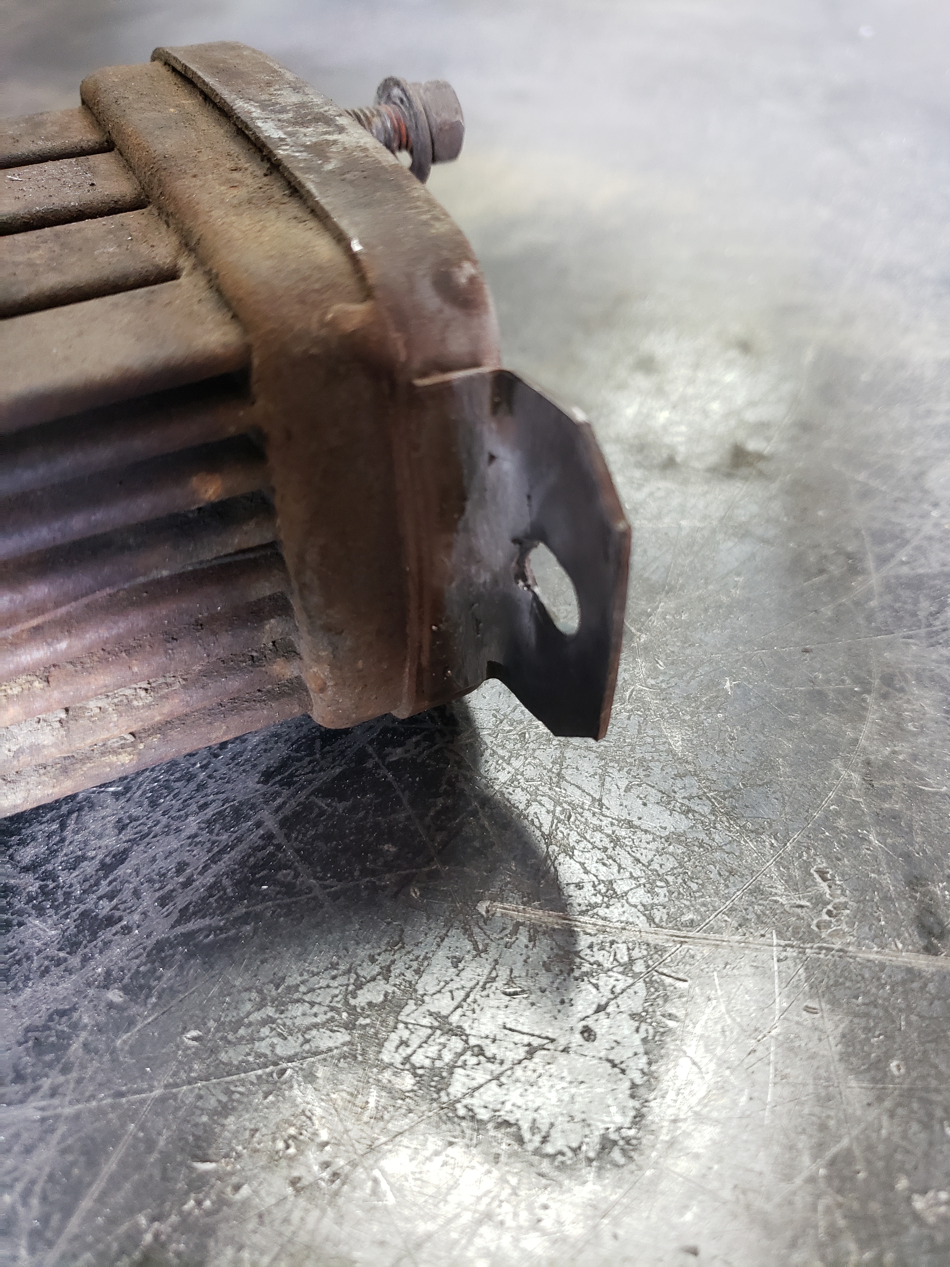 The tin was blasted, oil cooler welded (the mounting tab had a crack), mating surfaces filed, carburetor rebuilt, and surfaces sanded.
