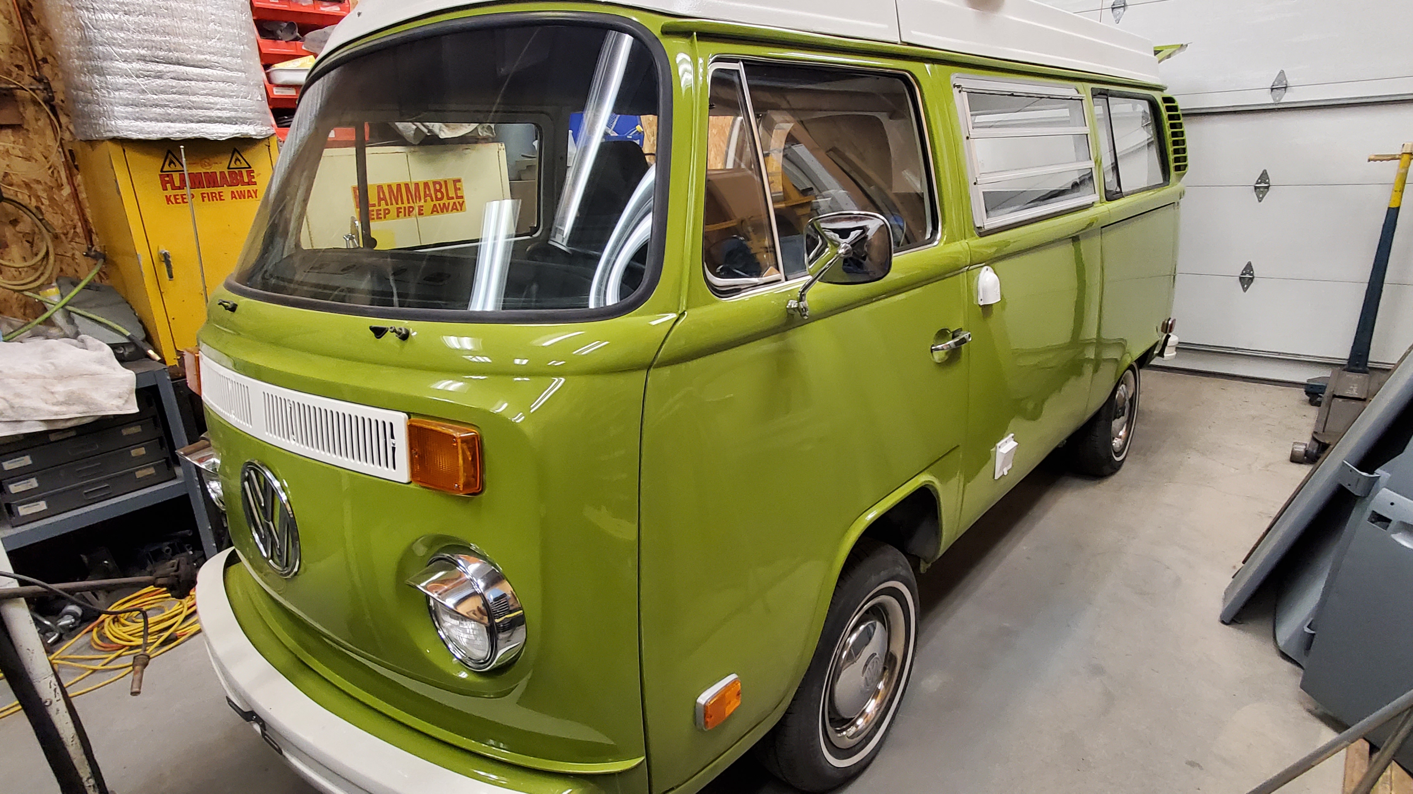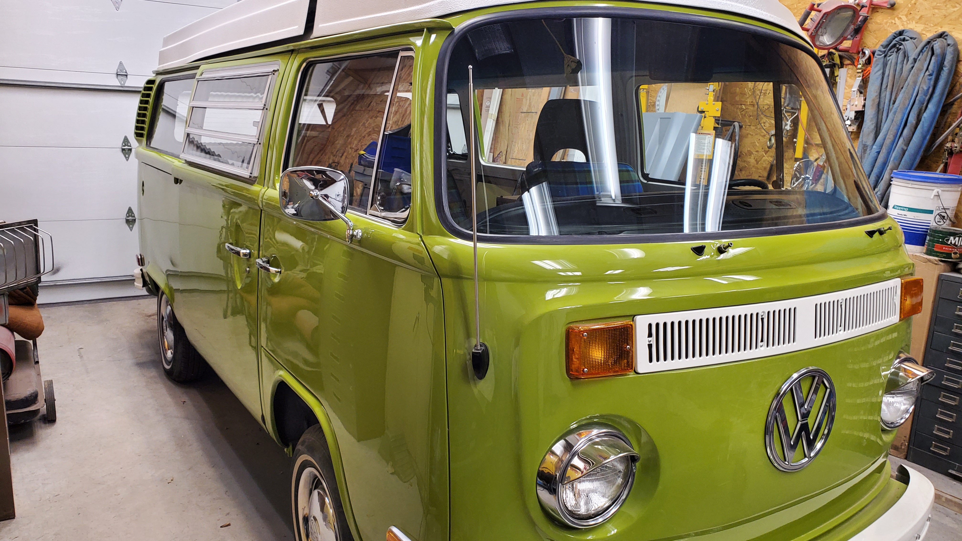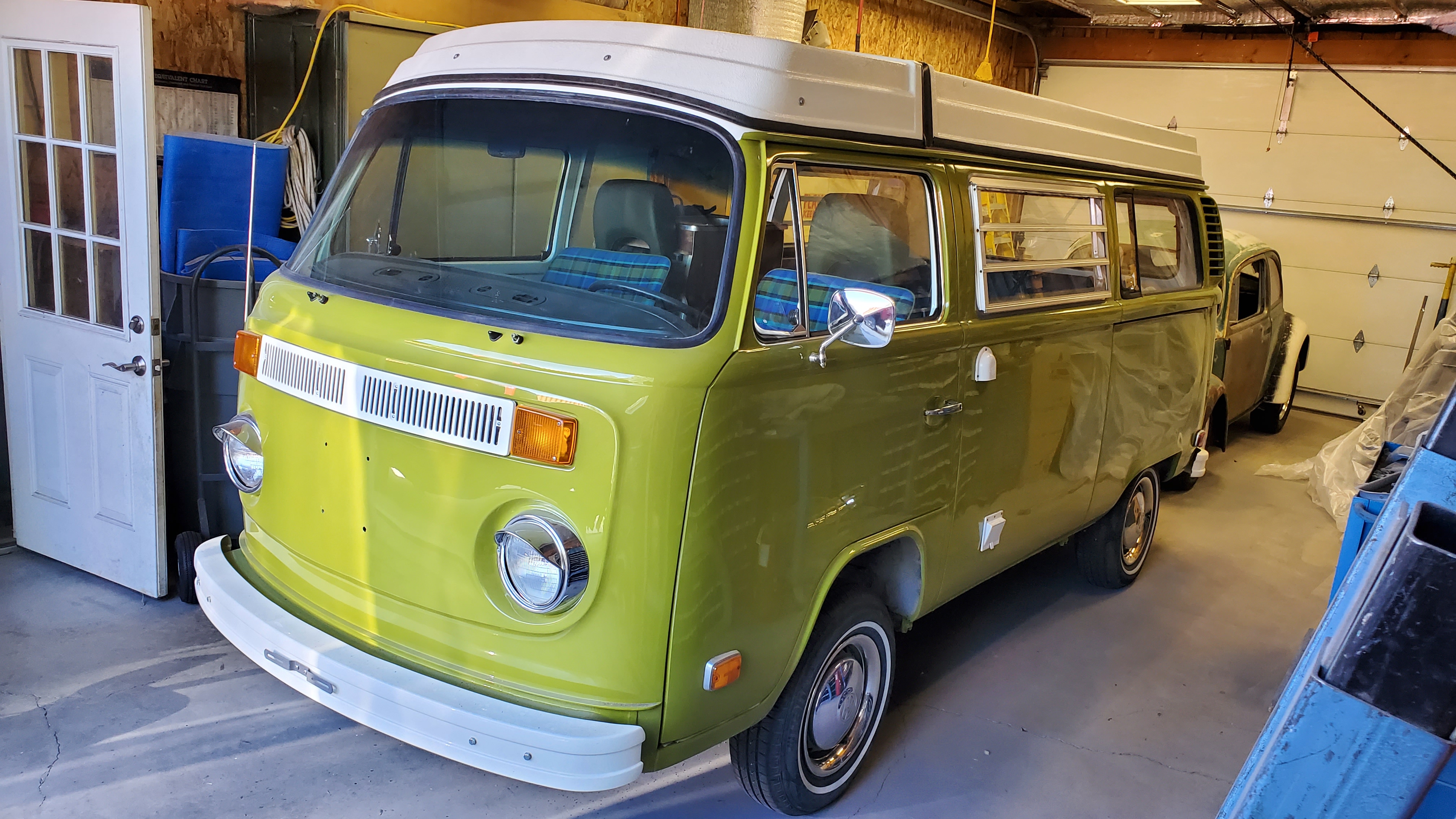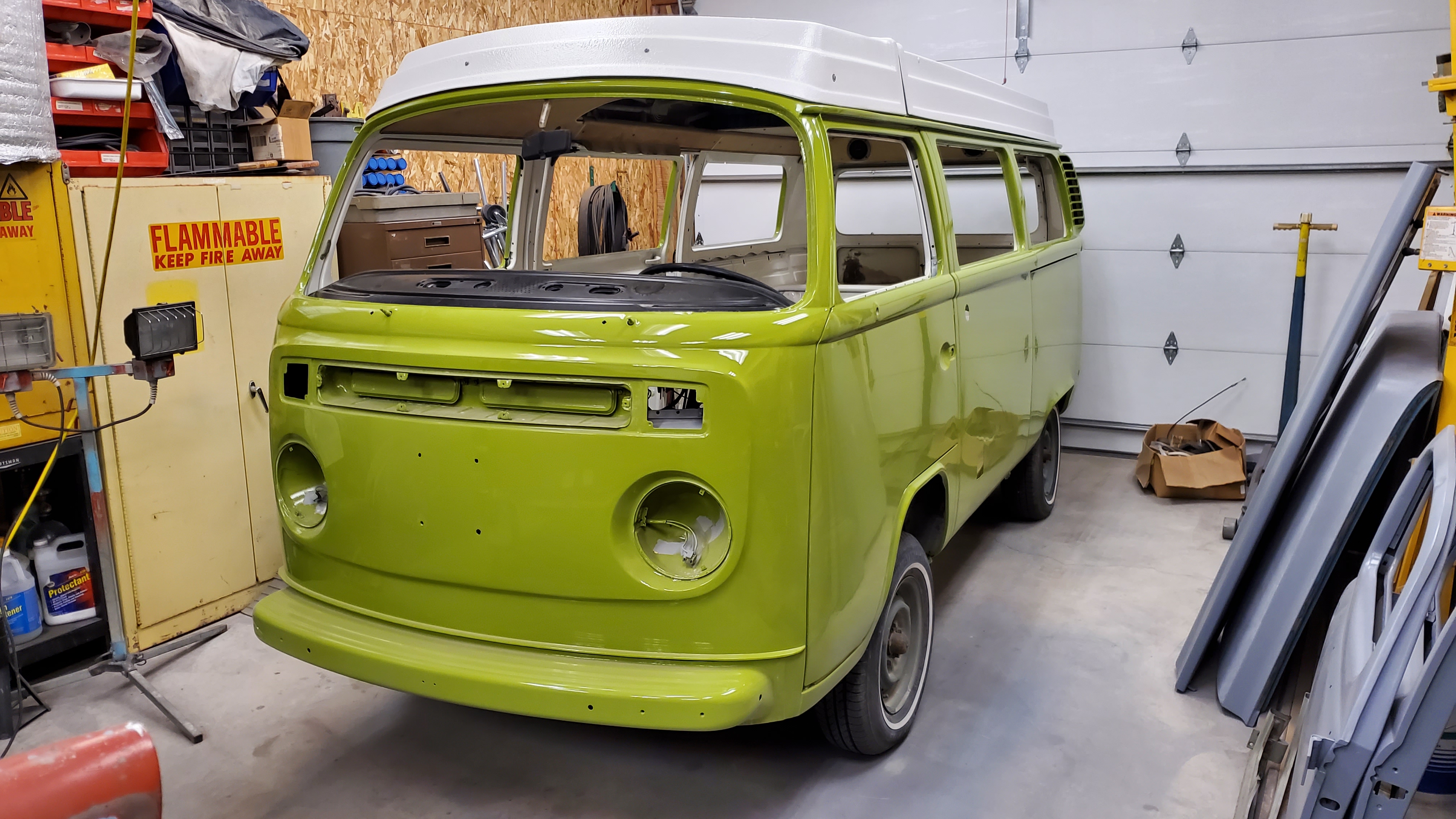 The top was removed to paint the exterior, but they skipped the roof and inside the pop-top.