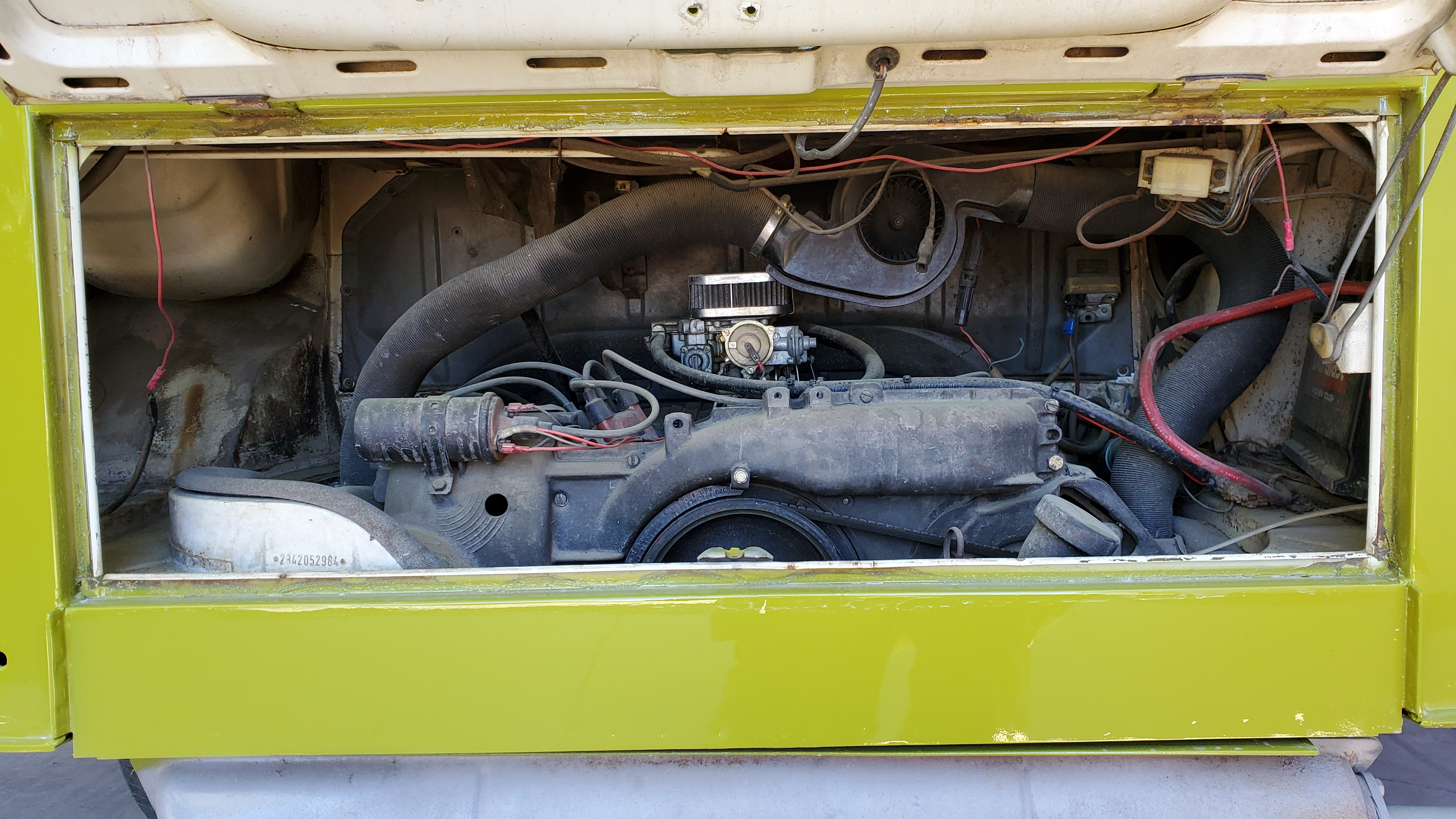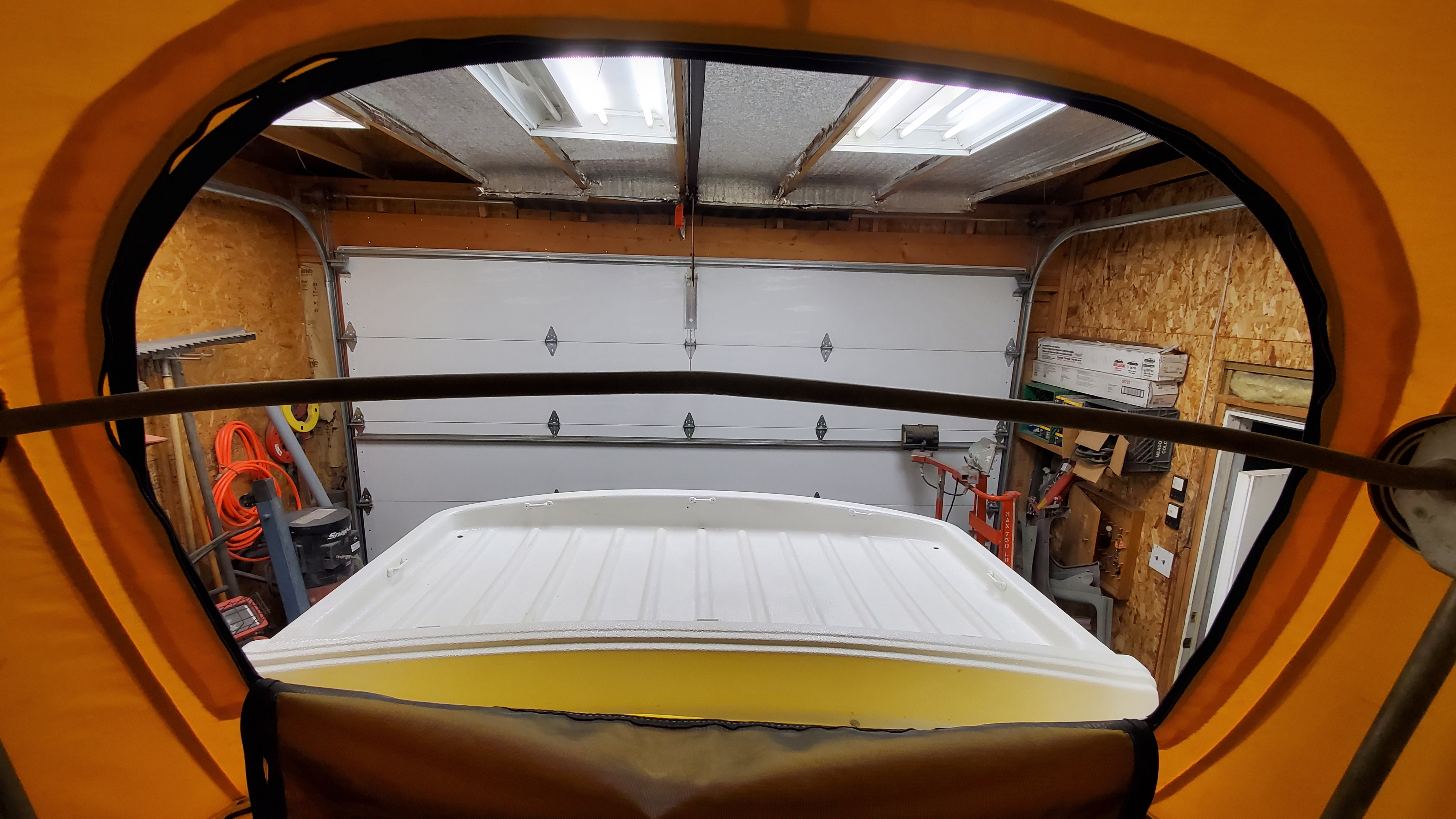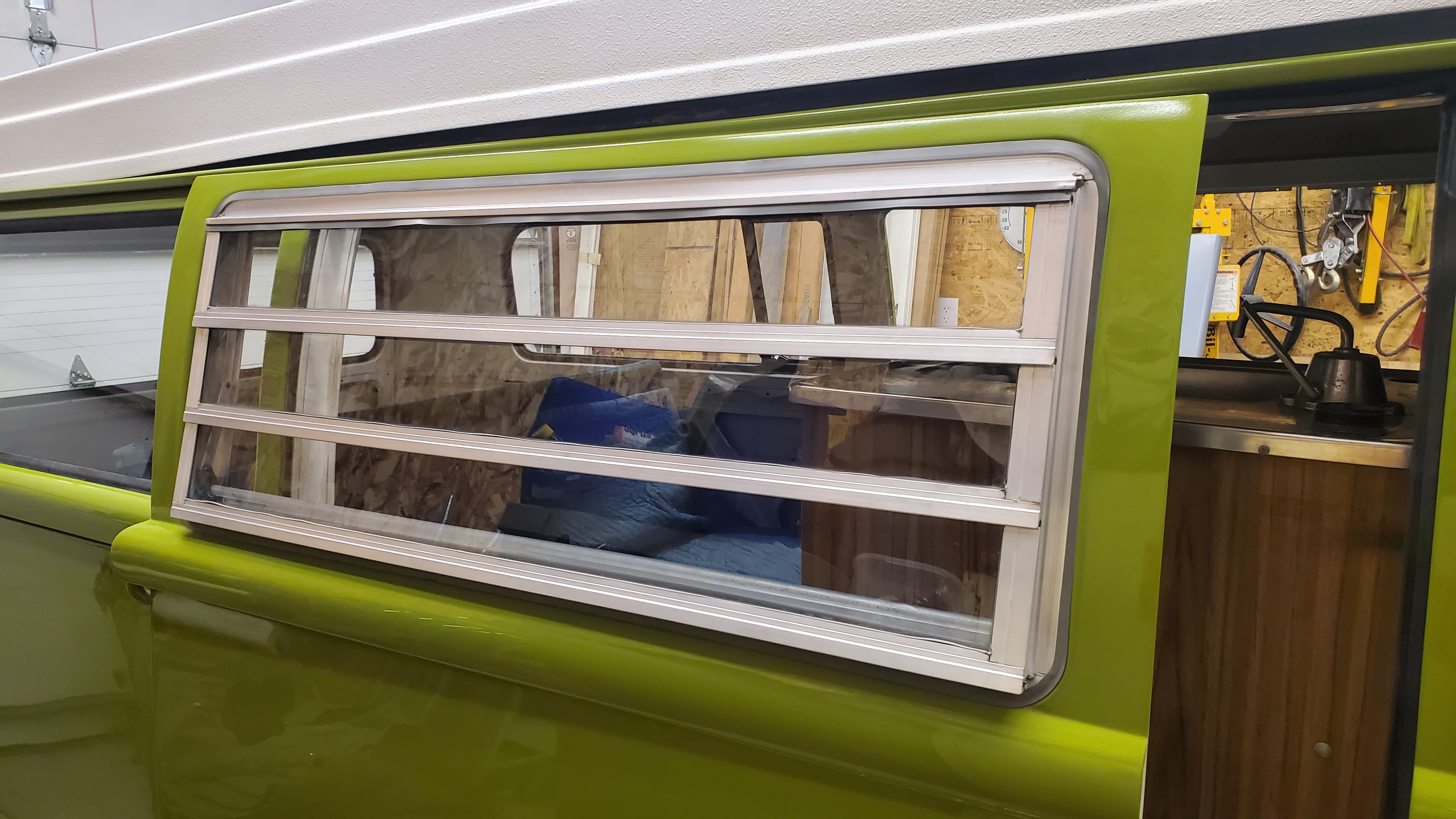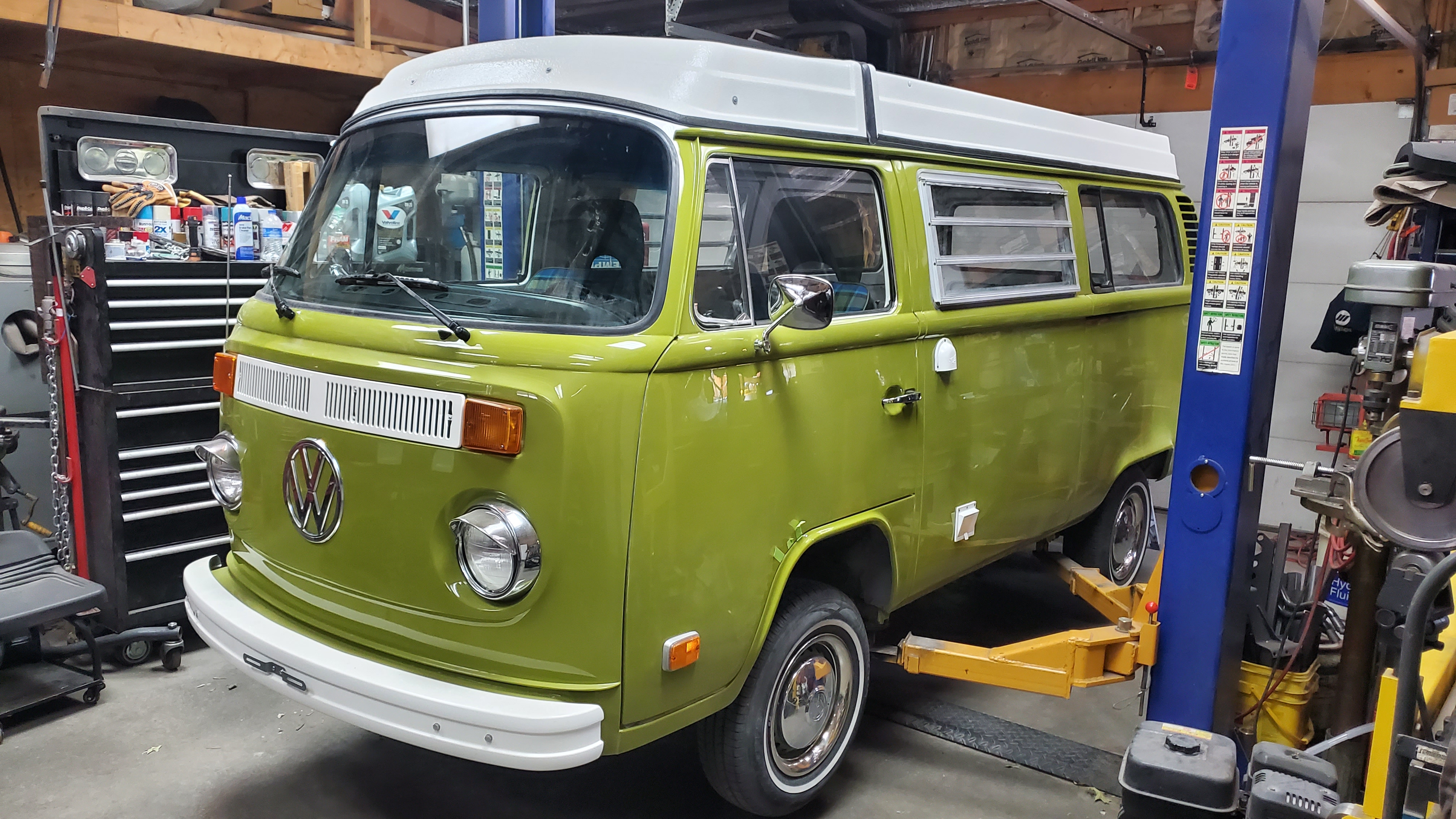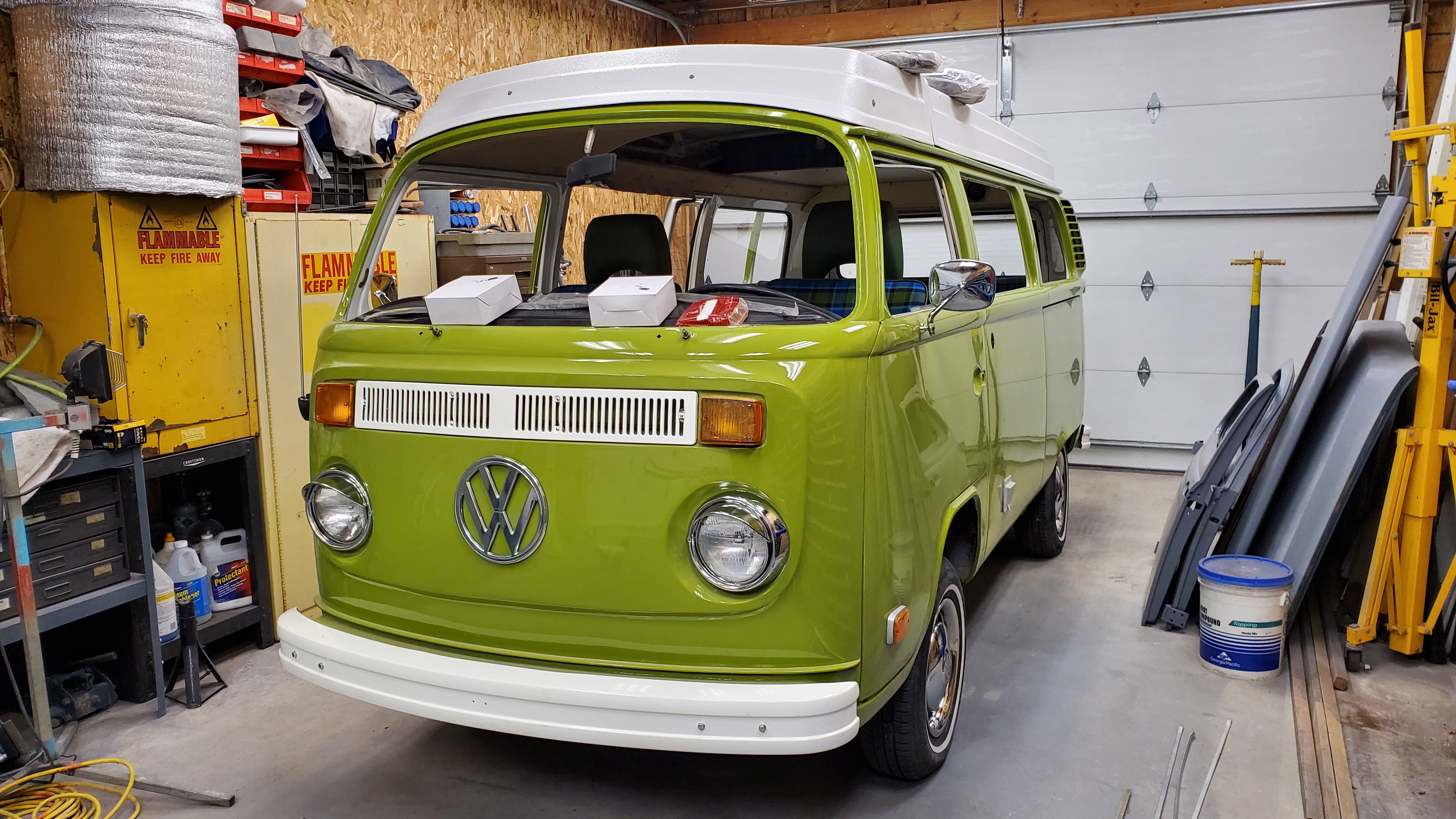The top was removed to paint the exterior, but they skipped the roof and inside the pop-top.