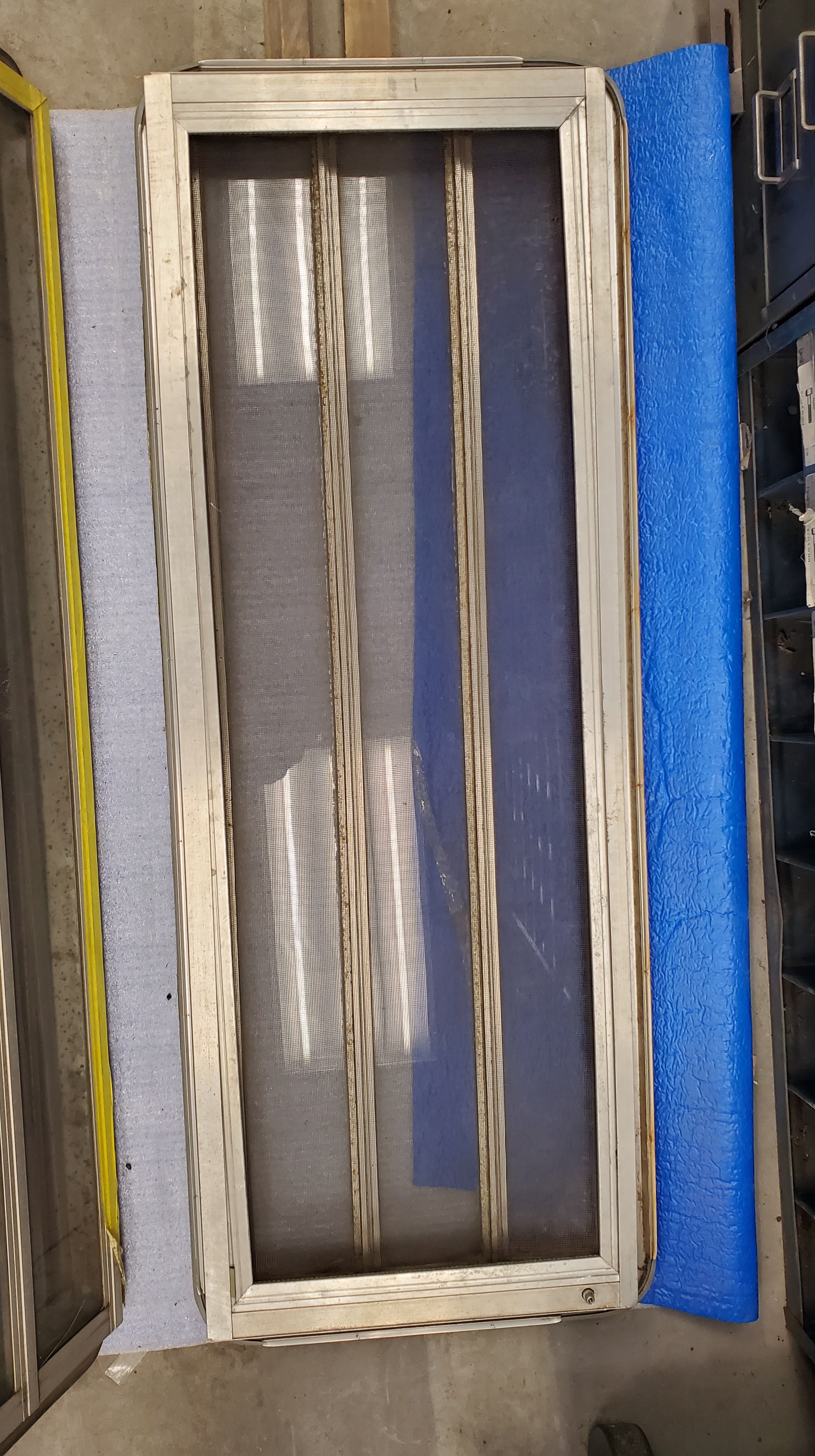 The hinges were straightened and washed with acid along with the retaining trim around the bottom of the tent.