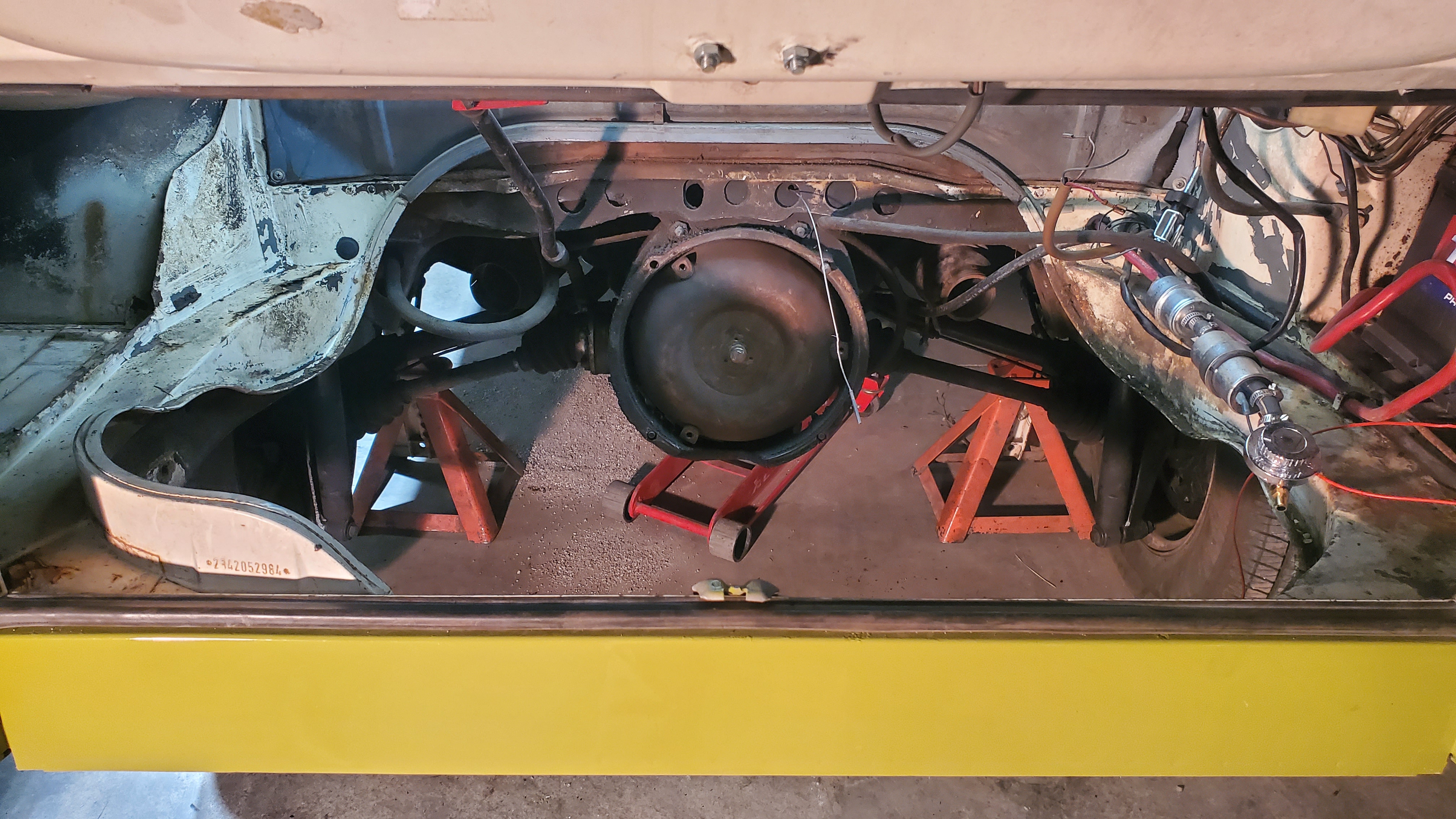 …only to come back shortly after due to a lack of power. The engine was running poorly with a dead cylinder, and the transmission needed to be replaced. It was decided that this bus would get the same treatment as the last one—a Subaru engine conversion! Additionally, since it’s already a rare VW automatic, this bus will also receive an automatic Subaru transmission.