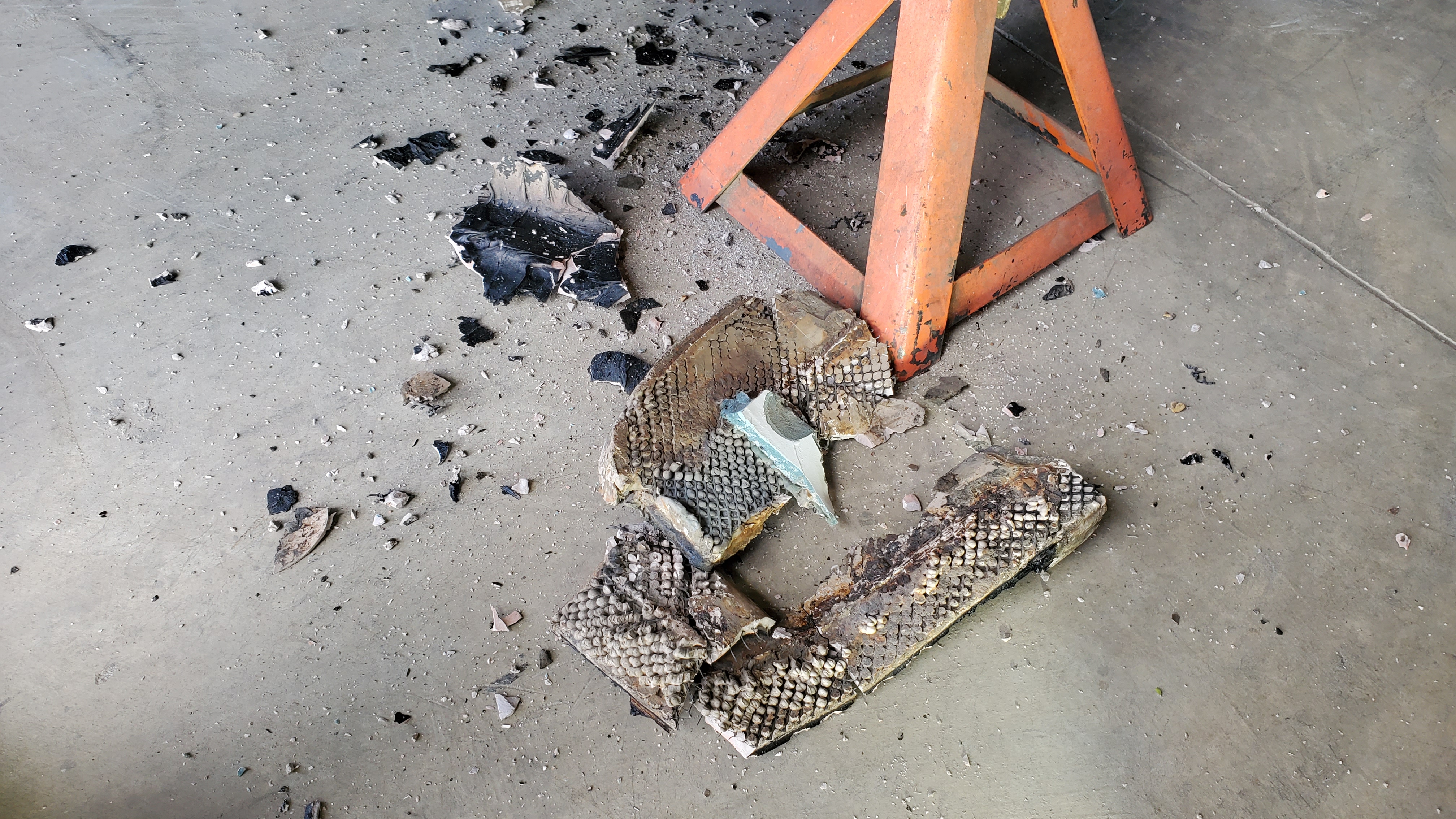 In the meantime, the rust will be addressed now that the anchor is out of the back of the bus. Hidden under the battery was someone’s attempt at artwork in the form of a battery tray—a little Picasso, if you ask me. I’ll try my hand at fixing it.