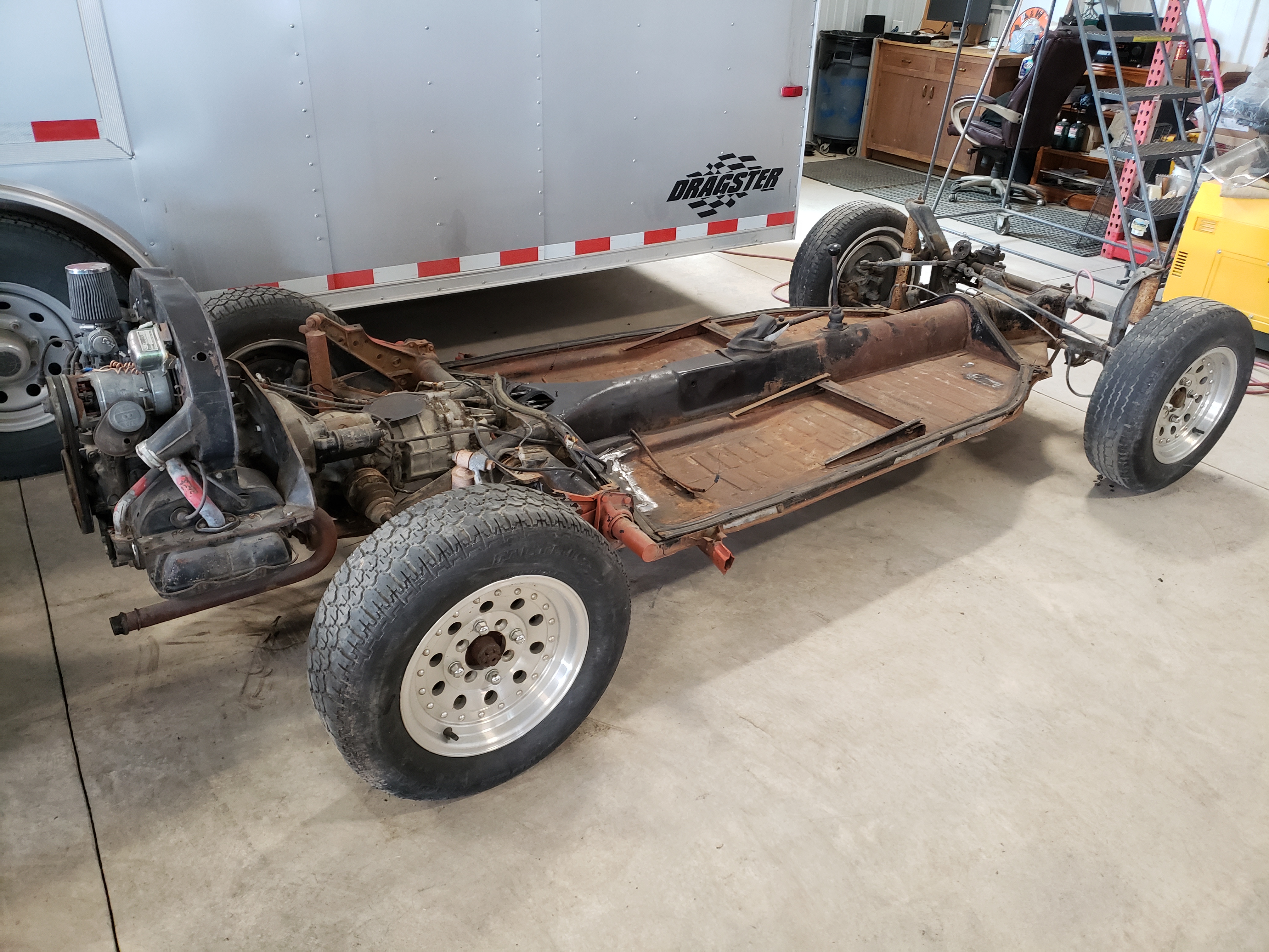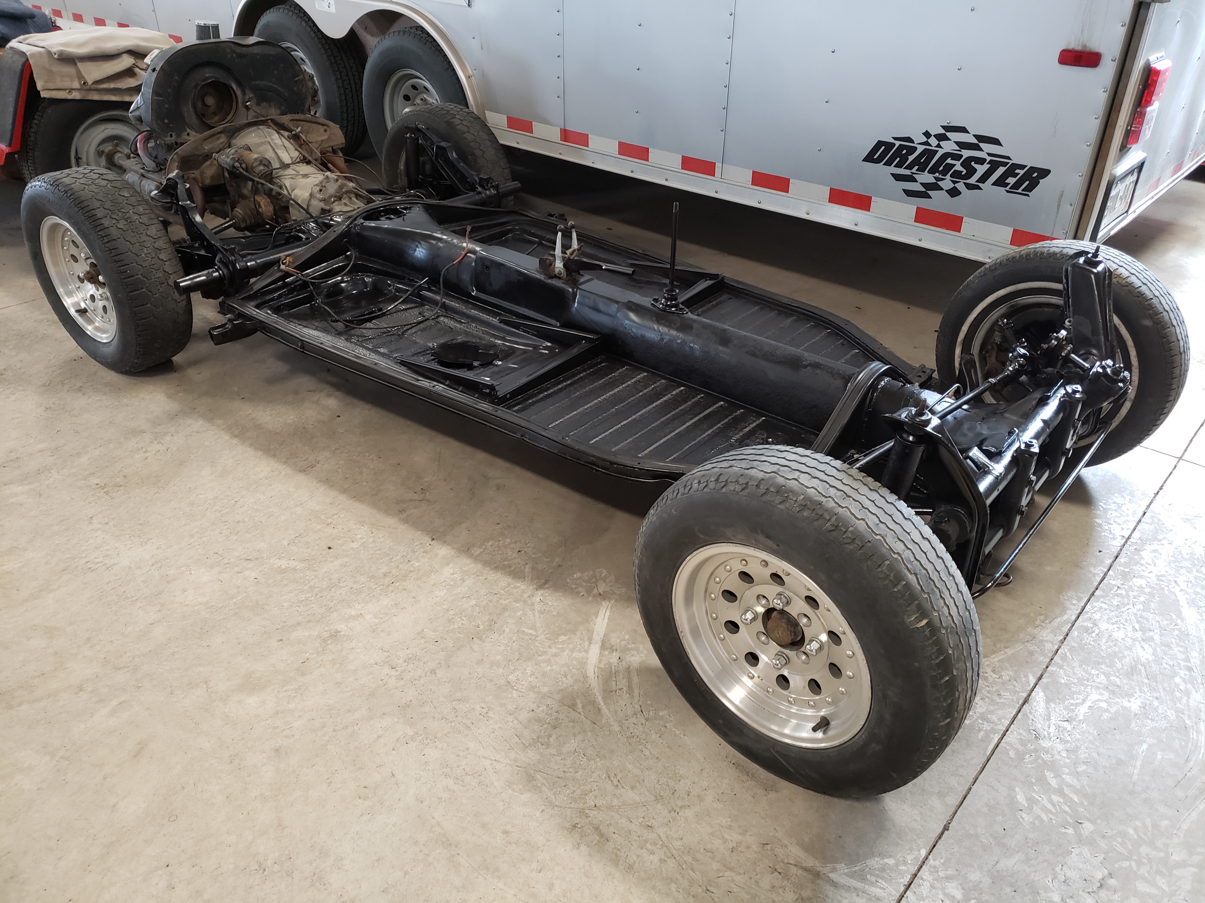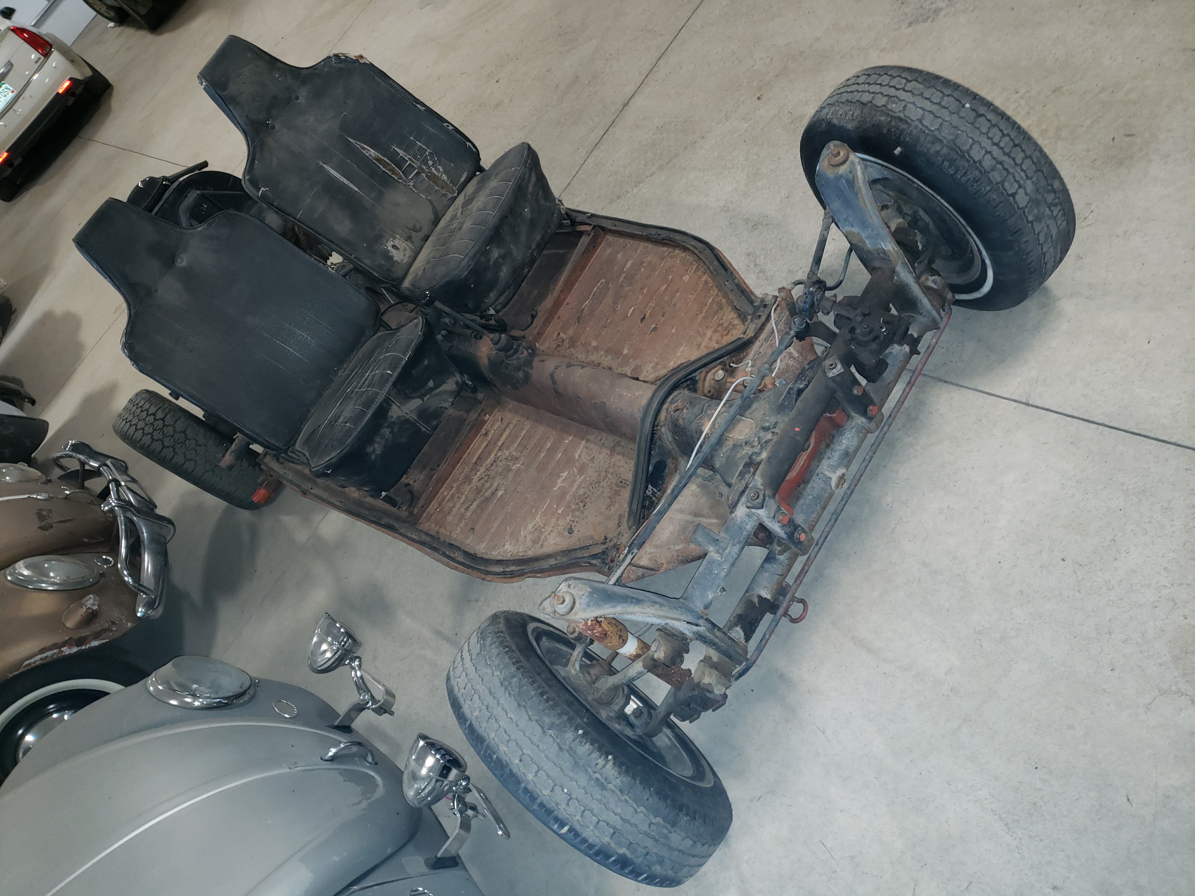 The spindles were swapped out for 2.5″ drop spindles with Karmann Ghia disk brakes for added stopping.