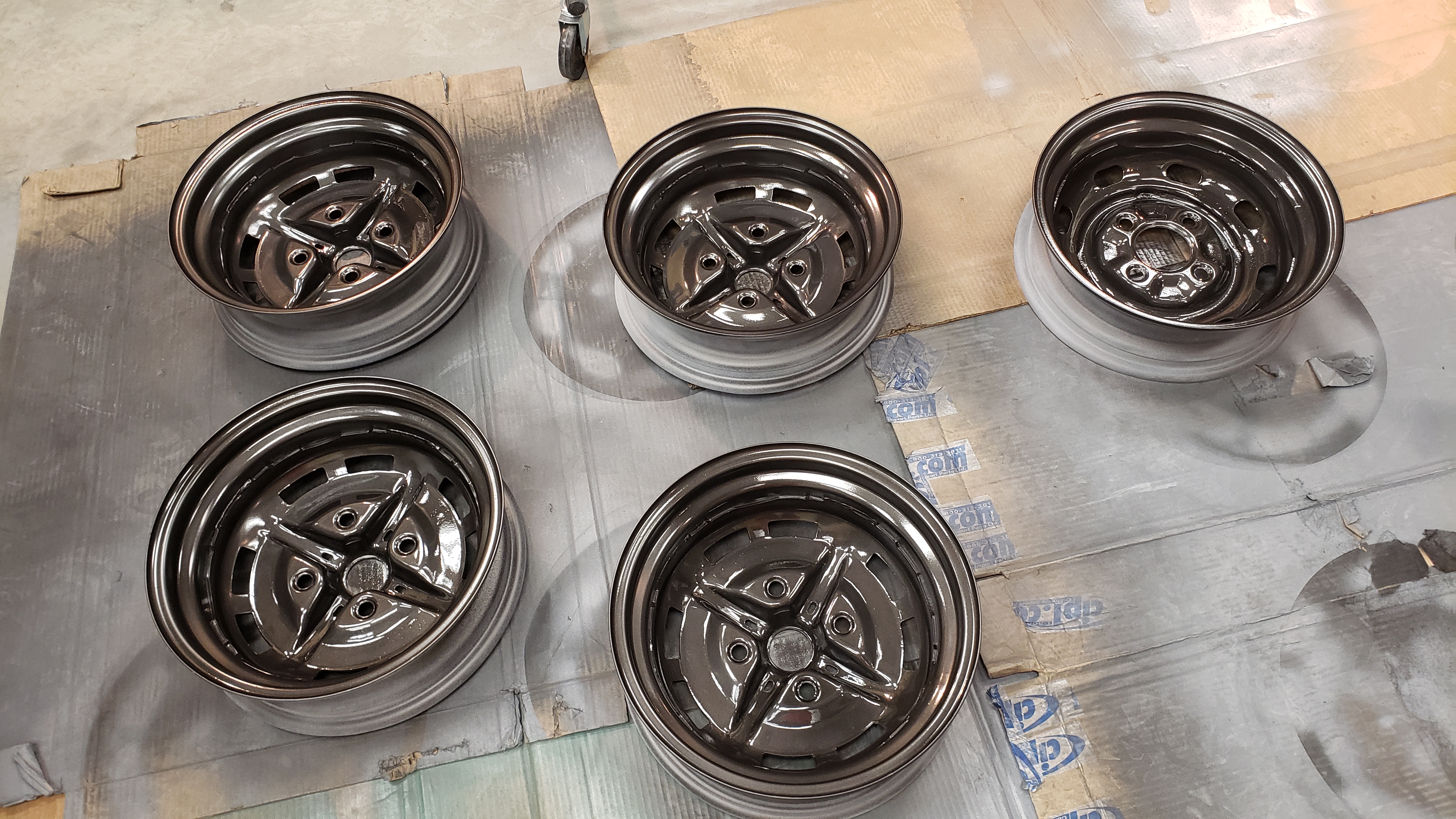 This is the shop 1776cc engine that will be going in the car. It will be getting a few performance add-ons, detail work, and tuning. The wheels are from the convertible that was just finished and should look great on this car. They are VW GT wheel that were blasted and painted with PAU – Granite Pearlcoat.