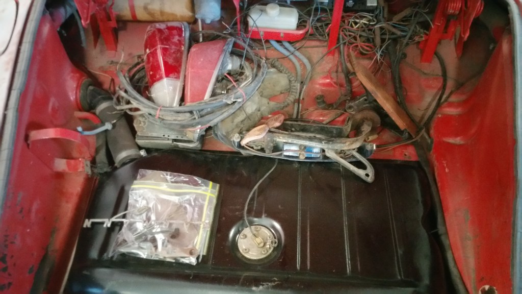 - Numbers matching car except engine (early ’60’s 40hp), black with red interior